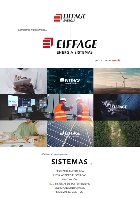 Eiffage Energía, filial española del Grupo Eiffage, cambia su nombre comercial y pasa a denominarse Eiffage Energía Sistemas, adquiriendo el nombre de su matriz Eiffage Énergie Systèmes, con el objetivo de homogeneizar la nomenclatura de todas las filiales del grupo francés.