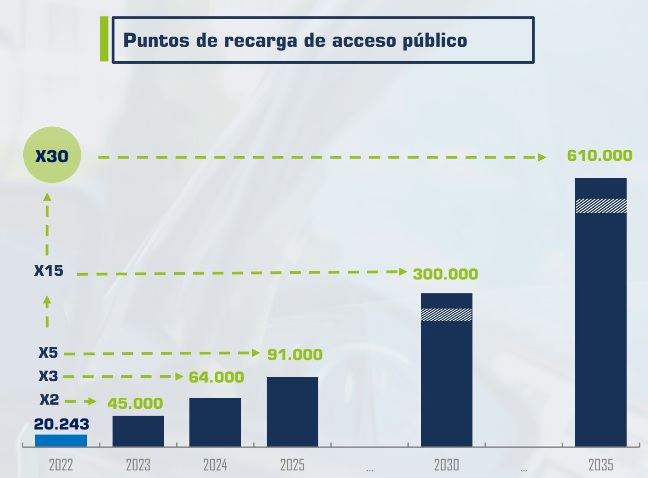 Asociaciones como ANFAC (Asociación Española de Fabricante de Camiones y Automóviles) estiman que para el año 2030 debería de haber 300.000 puntos de recarga de acceso público para cumplir con Fit for 55.