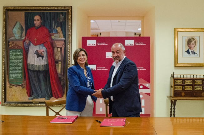El rector de la Universidad de Castilla-La Mancha, Julián Garde; y la directora general de Personas y Organización de Repsol, Carmen Muñoz, han suscrito en el Rectorado, en el Campus de Ciudad Real, un convenio marco de colaboración con el objetivo de potenciar la relación de ambas organizaciones en diferentes actividades dirigidas a la investigación, el desarrollo tecnológico, industrial y empresarial, la innovación y transformación digital, la formación, y el intercambio de expertos.