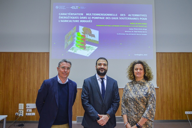 “El cambio climático está propiciando una reducción de las precipitaciones y un aumento de la temperatura, lo que aumenta la demanda hídrica en acuíferos ya de por sí sobreexplotados y hace que se requieran mayores recursos energéticos para el bombeo del preciado recurso hídrico”, recuerda el autor de esta investigación doctoral con mención internacional, dirigida por Ángel Molina y Socorro García y la primera que se defiende en francés en la UPCT.